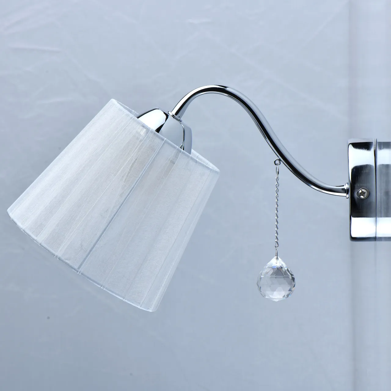 Основание/металл/цвет хрома Абажур/органза/белый Декор/хрусталь/прозрачный