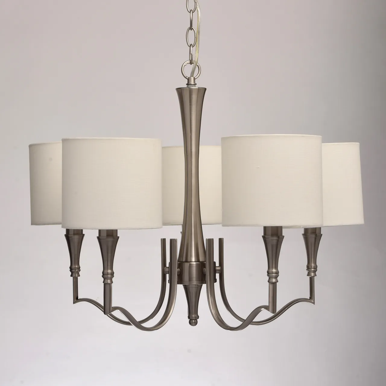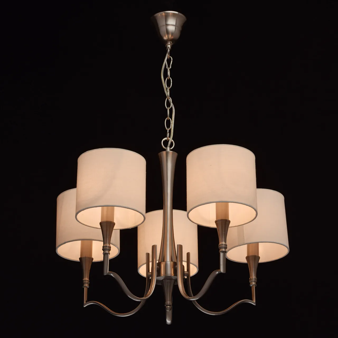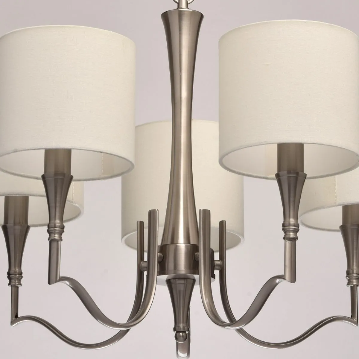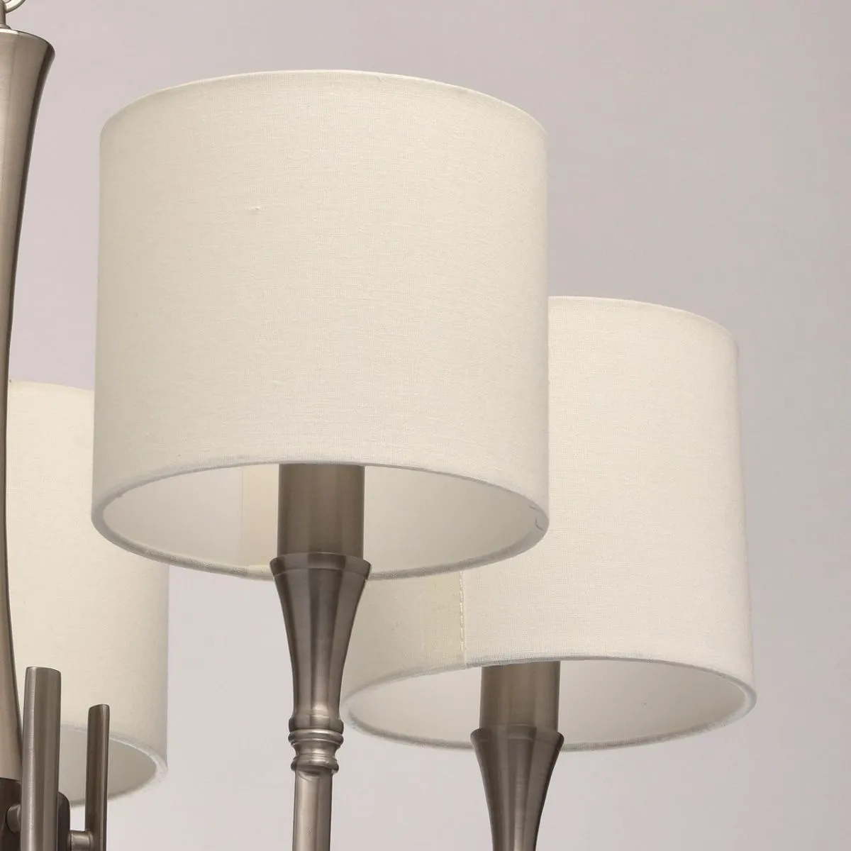 Металлическое основание цвета сатинового никеля. Абажуры - текстиль сливочного цвета